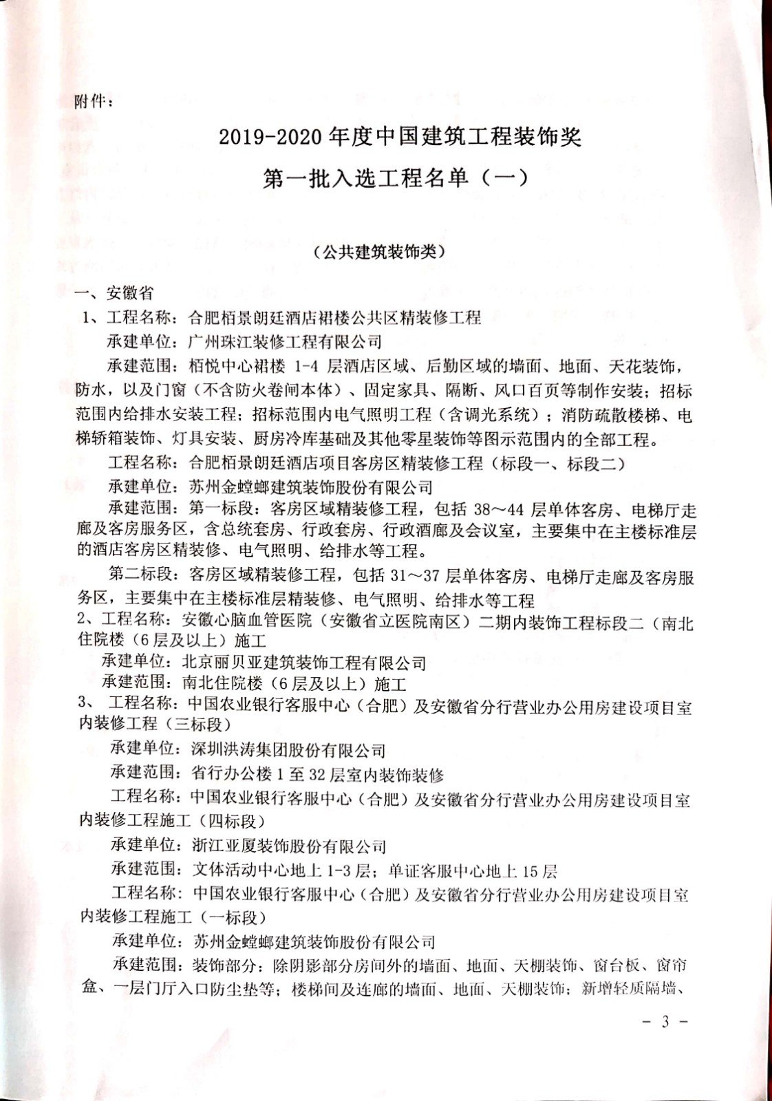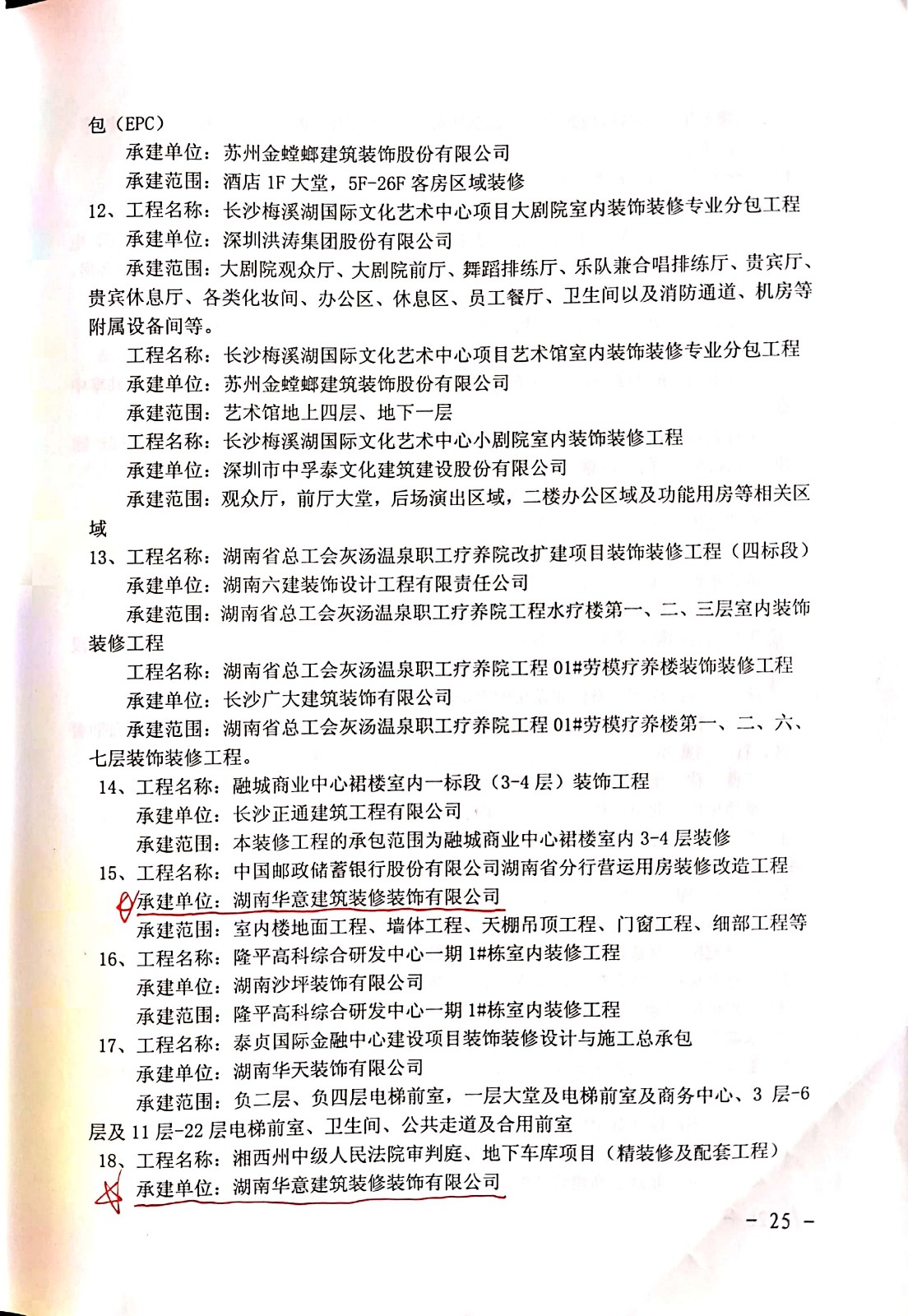 裝飾獎--中國郵政儲蓄銀行股份有限公司湖南省分行營運用房裝修改造工程、湘西州中級人民法院審判庭、地下車庫項目(精裝修及配套工程)