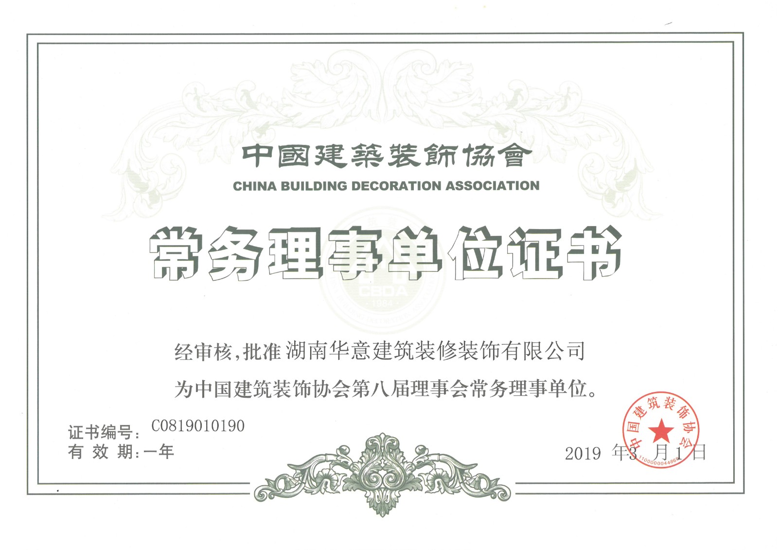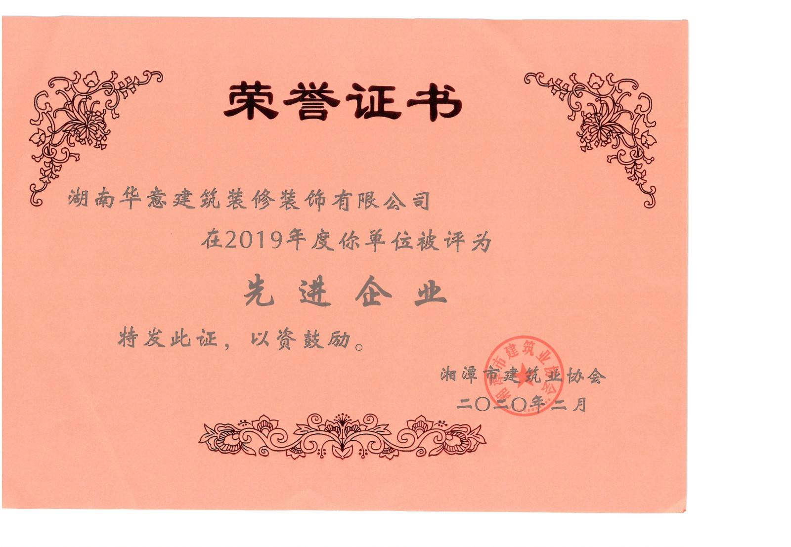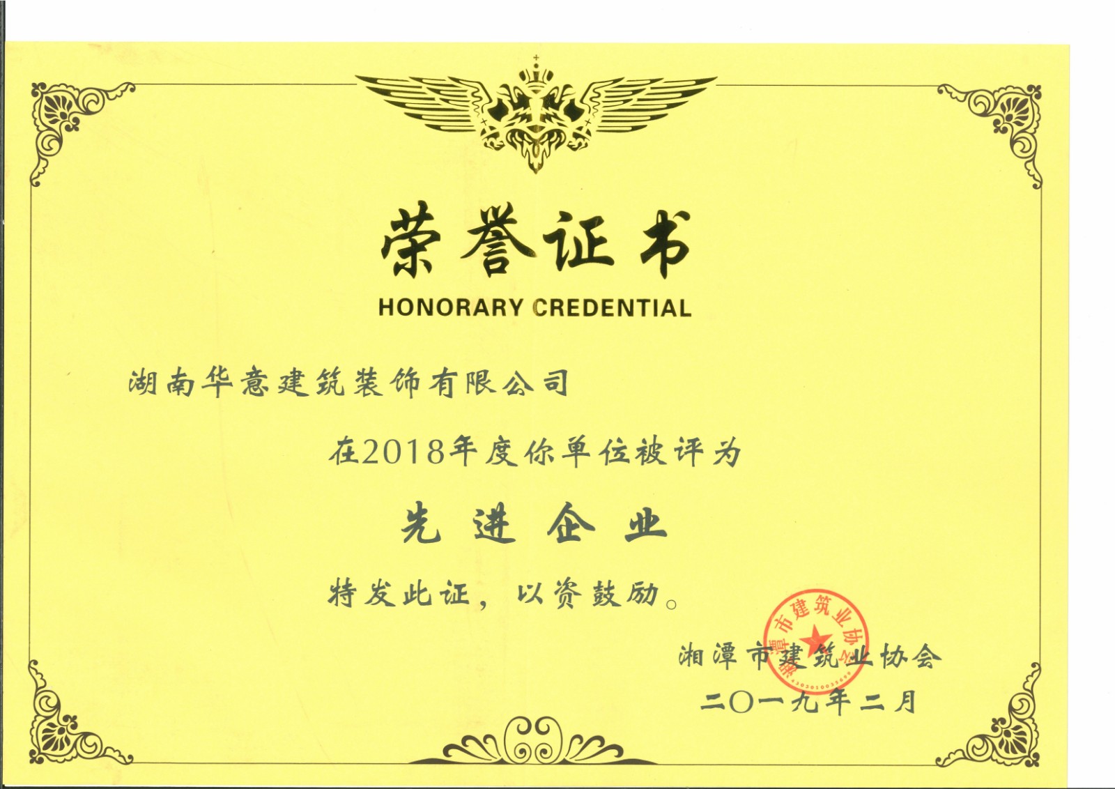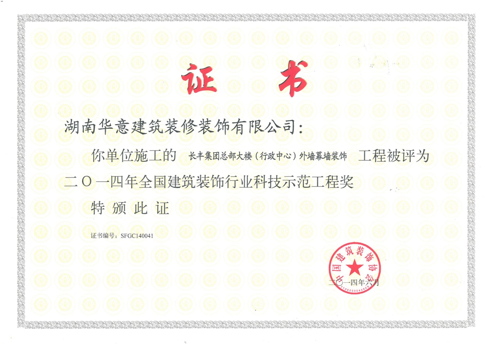 行業科技示范工程榮譽證書