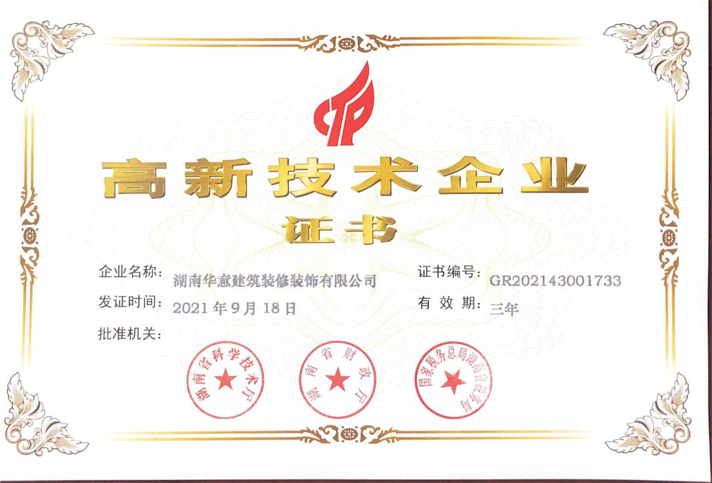 高新技術企業證書