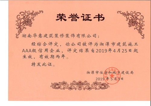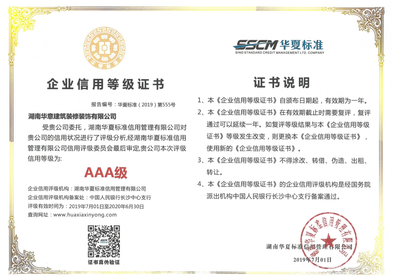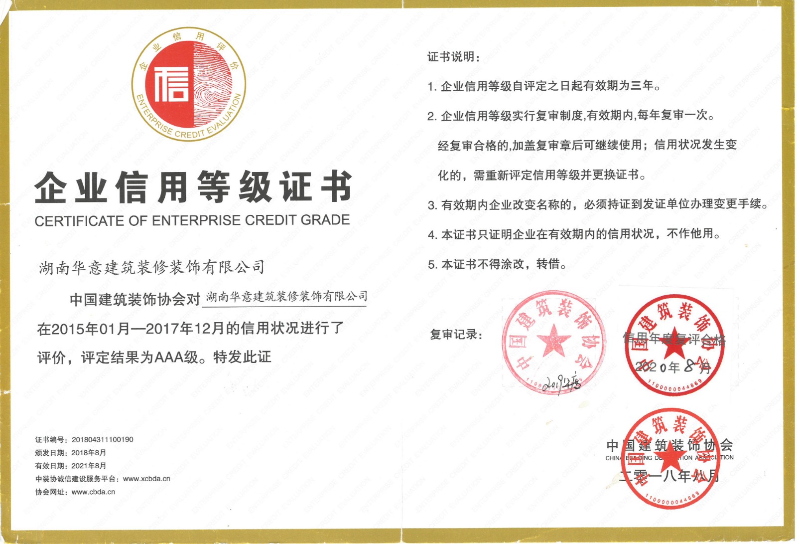 企業(yè)信用等級(jí)證書AAA級(jí)